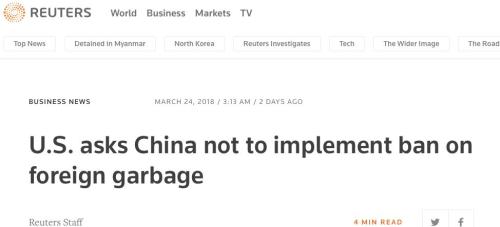 據(jù)路透社報(bào)道,會(huì)議上美方代表表示,中國(guó)對(duì)于可回收品的進(jìn)口限制已經(jīng)極大地中斷了全球廢金屬供應(yīng)鏈的運(yùn)轉(zhuǎn),要求中國(guó)取消對(duì)“洋垃圾”的進(jìn)口禁令。