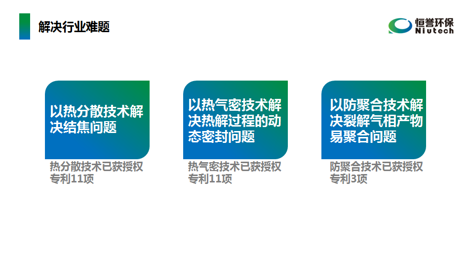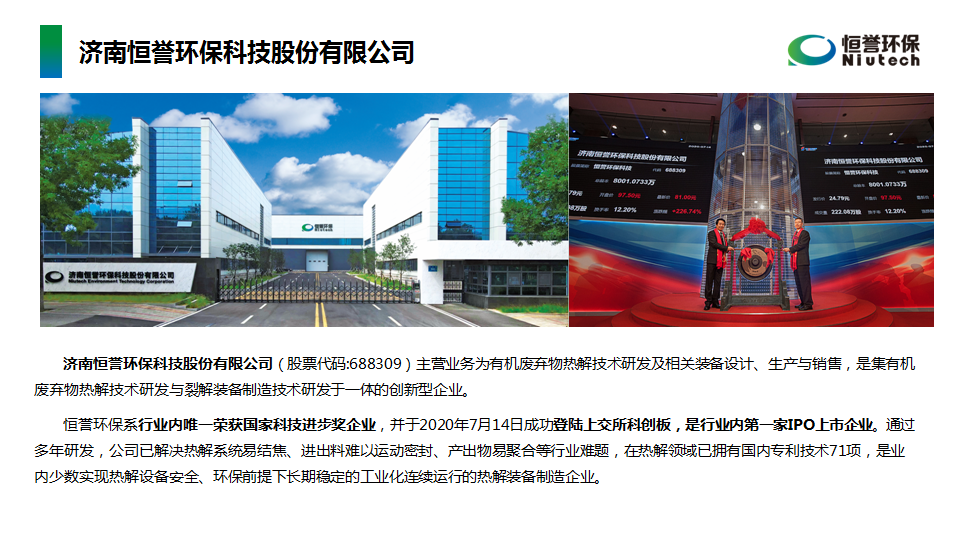 “作為行業(yè)內(nèi)榮獲國家科技進步獎企業(yè),IPO上市企業(yè),恒譽環(huán)保通過多年研發(fā),已解決熱解系統(tǒng)易結(jié)焦、進出料難以運動密封、產(chǎn)出物易聚合等行業(yè)難題,是業(yè)內(nèi)少數(shù)實現(xiàn)熱解設(shè)備安全、環(huán)保前提下長期穩(wěn)定的工業(yè)化連續(xù)運行的熱解裝備制造企業(yè)。”