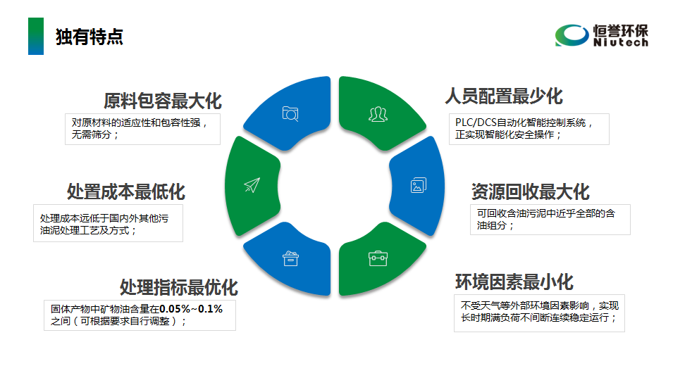 “恒譽環(huán)保自主研發(fā)的工業(yè)連續(xù)化含油污泥熱解生產(chǎn)線為國家科技進步獎再創(chuàng)新項目,具有原料包容最大化、處置成本最低化、資源回收最大化、處理指標最優(yōu)化、環(huán)境因素最小化、人員配置最少化等獨有優(yōu)勢。”