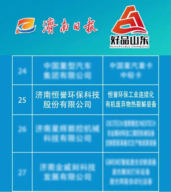 3月2日,山東省召開(kāi)“好品山東”建設(shè)情況新聞發(fā)布會(huì),公布第一批“好品山東”品牌名單,濟(jì)南恒譽(yù)環(huán)??萍脊煞萦邢薰緫{借“工業(yè)連續(xù)化有機(jī)廢棄物熱裂解裝備”入選。