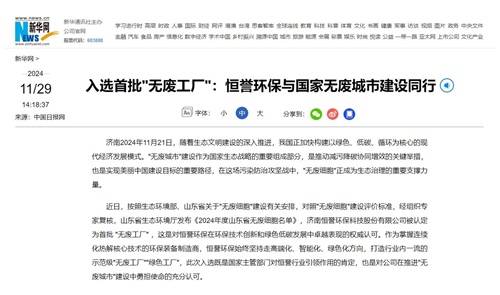 新華社旗下新華網(wǎng),環(huán)球時(shí)報(bào)旗下環(huán)球網(wǎng)等國內(nèi)多家知名媒體,以《入選首批“無廢工廠”:恒譽(yù)環(huán)保與國家無廢城市建設(shè)同行》為題,報(bào)道了恒譽(yù)環(huán)保響應(yīng)國家生態(tài)文明建設(shè)號(hào)召,在“無廢城市”建設(shè)中做出了突出貢獻(xiàn)。文章指出,恒譽(yù)環(huán)保在資源化技術(shù)創(chuàng)新、綠色低碳發(fā)展、打造一流無廢工廠等方面起到了行業(yè)引領(lǐng)示范作用。原文如下: