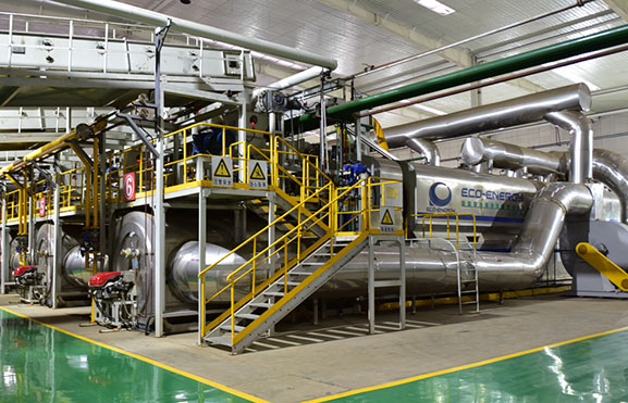 生產(chǎn)所需熱能完全由油泥殘渣熱解產(chǎn)生的不凝可燃氣或燃料油提供,且采用余熱循環(huán)供熱方式,大大節(jié)省了能源消耗,降低了生產(chǎn)線運行成本